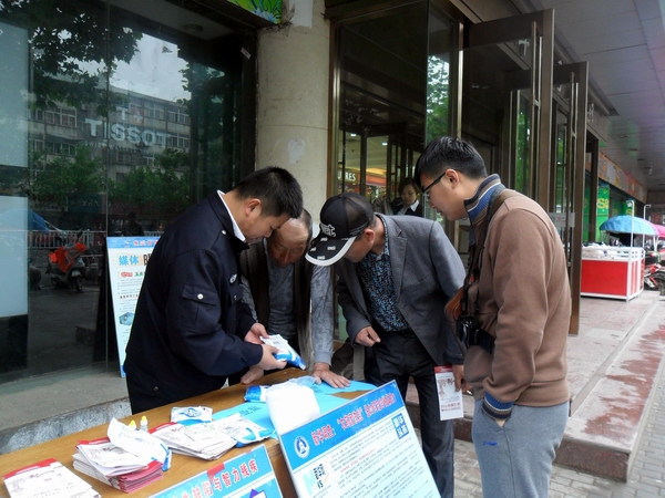 林曉龍向群眾宣傳真假小包裝辨別知識