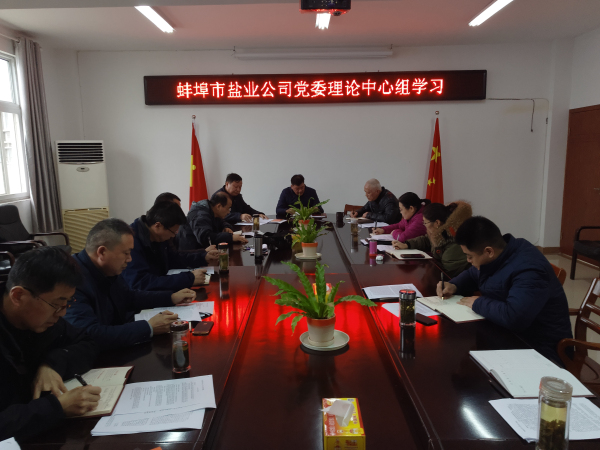 3月19日,蚌埠市鹽業公司黨委召開中心組理論學習會議,會議由黨委書記邱軍主持,黨委班子成員參加會議,中層以上干部和縣公司主要負責人列席會議。