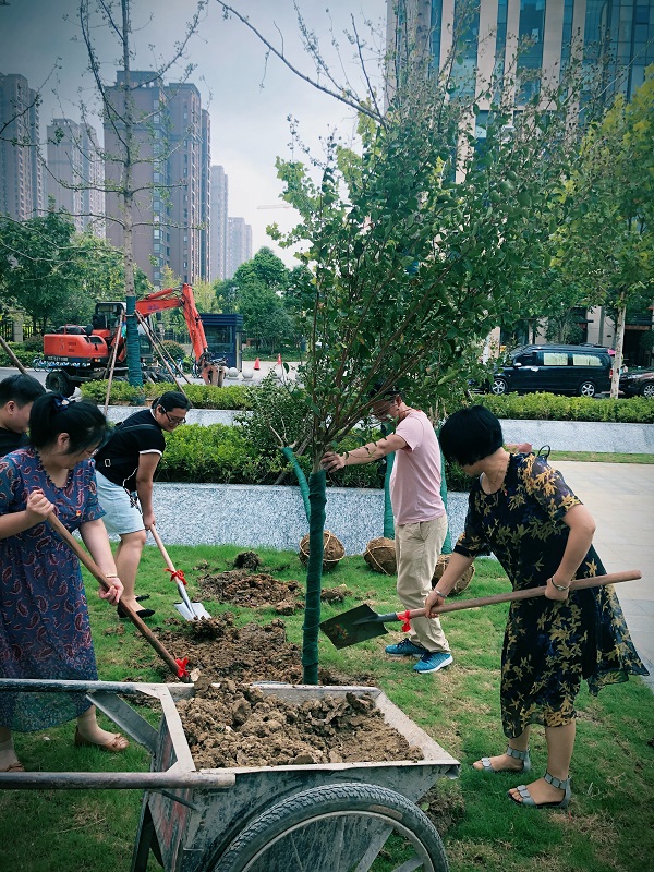 上午9時許,全體黨員準時來到徽鹽世紀廣場商辦樓前,開始植樹活動。活動現場,黨員們不顧天氣炎熱,相互協作,配合默契,展現出一片熱火朝天的勞動場景。搬運樹苗、揮鍬挖坑、填土栽種……經過1個多小時的努力,六株蔥郁的紫薇屹立于商辦樓前,為徽鹽世紀廣場增添了一道亮麗的風景。隨后,大家還小心翼翼地在樹上系上“機關第一黨支部種植”的銘牌,以此要求全體黨員養護好這些樹木,號召大家自覺養成植綠護綠的良好習慣。