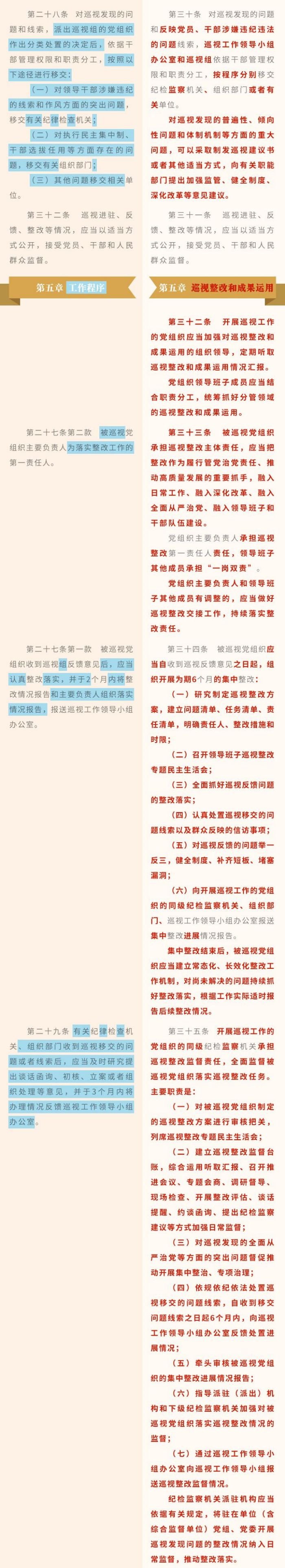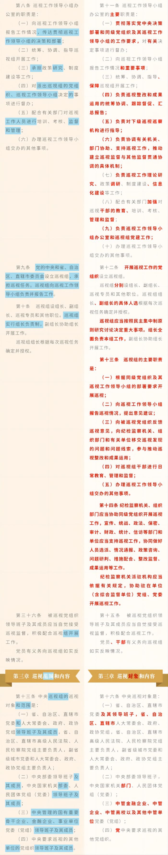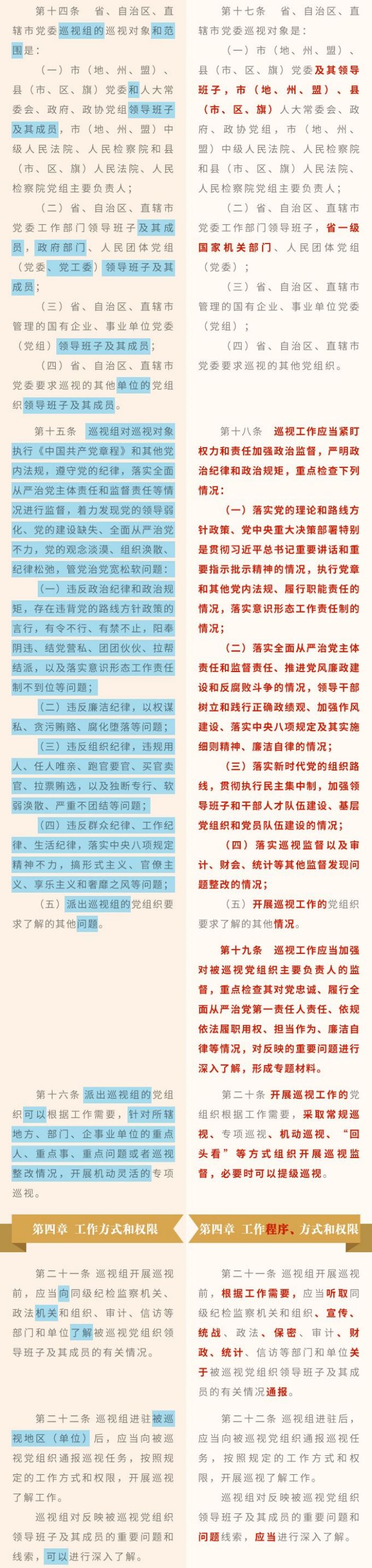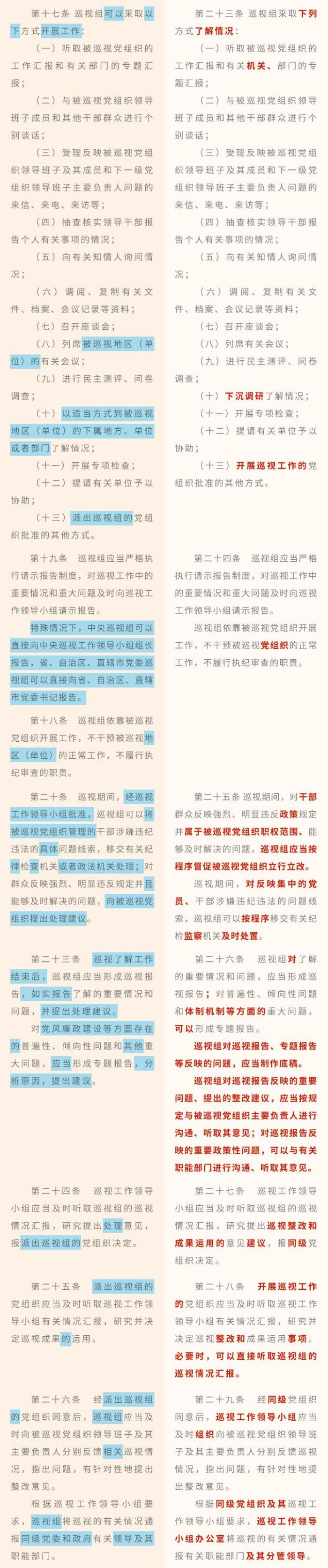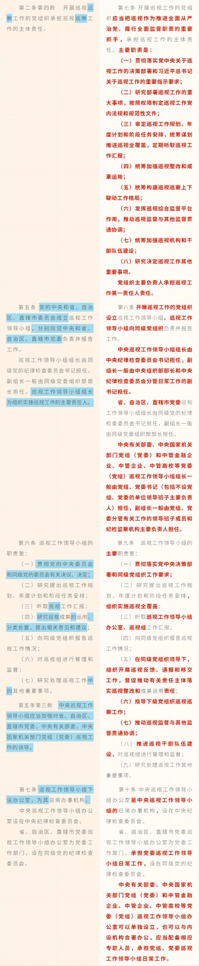 《中國共產(chǎn)黨巡視工作條例》修訂條文對照表