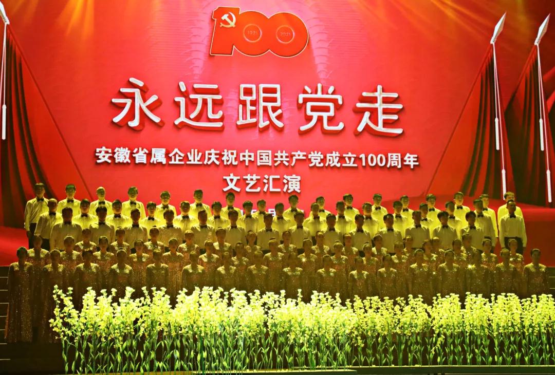 6月18日下午,“永遠跟黨走”省屬企業慶祝中國共產黨成立100周年文藝匯演在安徽大劇院隆重舉行。這次文藝匯演是我省省屬企業慶祝建黨100周年系列活動之一,也是一場生動的黨史學習教育課。省屬企業干部職工自編自演文藝節目,深情謳歌偉大的中國共產黨,回顧贊頌國有企業的創業史、改革史、發展史,真摯抒發安徽國資國企在黨的領導下奮進新征程的壯志豪情。